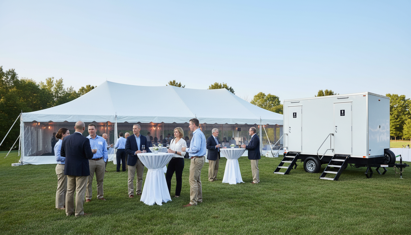 Clean, comfortable restroom trailers for weddings, events, job sites, and temporary facilities across Harrisburg, Lancaster, York, and surrounding Central Pennsylvania communities.